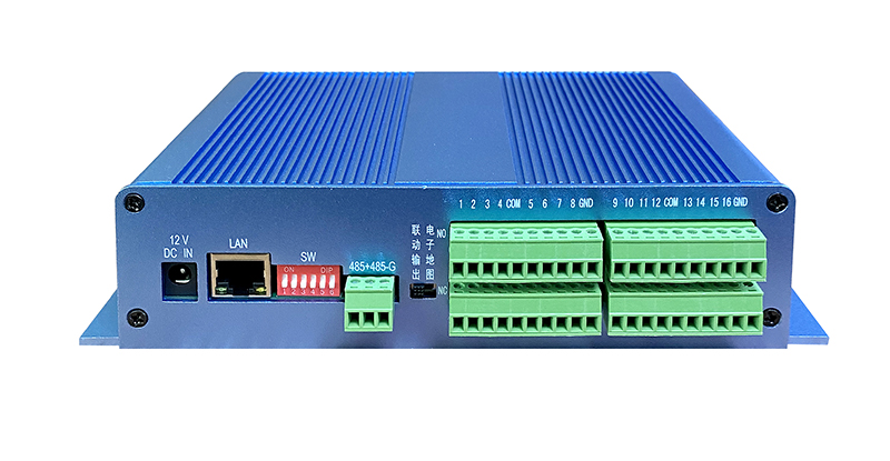 16路聯動設備 通訊方式:RS485/網絡 設備尺寸 :240*121*49mm 設備供電:DC12V 設備功率:4W 端口說明: NC: 常閉開關量信号端口,用於(yú)接常閉型報(bào)警輸入設備的一端。